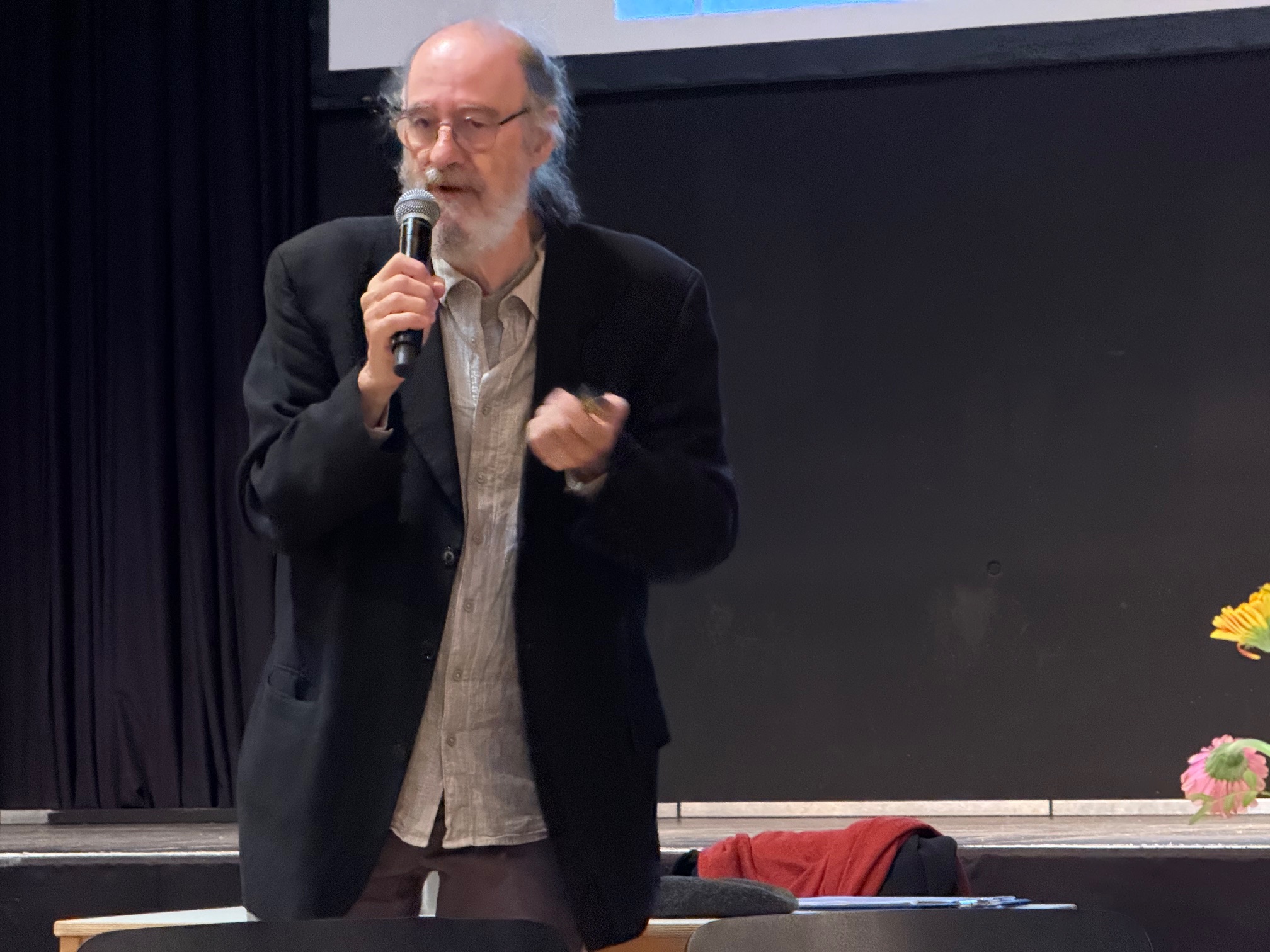 „Meine Mutter blieb zeit ihres Lebens 14 Jahre alt.“ - Der Kölner Psychotherapeut und Sohn zweier Shoah-Überlebender Avi Appelstein erzählte Schülerinnen und Schülern des Hansa-Gymnasiums aus dem Leben seiner Familie während des Kölner Erzählcafés.