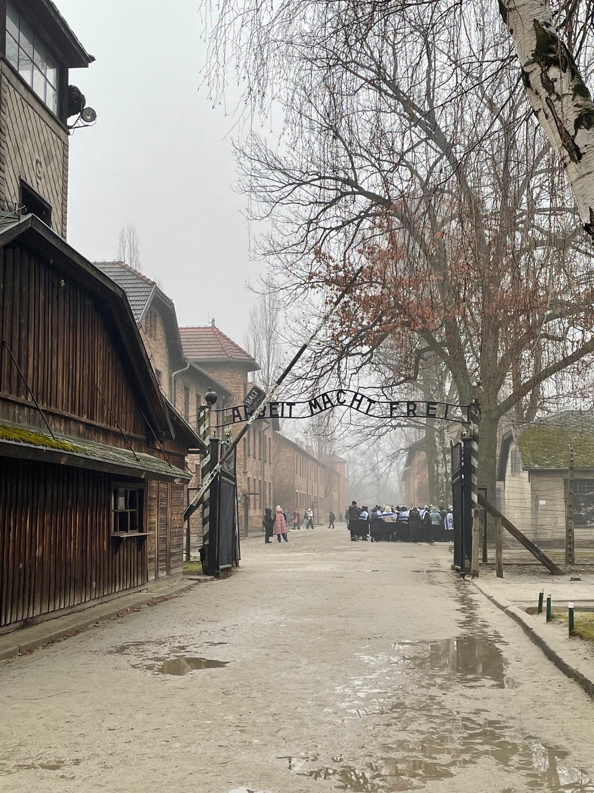 Am nächsten Tag waren wir schon früh wach und starteten mit einer Führung durch das Stammlager, das Arbeitslager von Auschwitz. Wir hatten schon so viel über diesen Ort gehört und nun betraten wir selbst das Gelände. Spätestens ab dem Moment, an dem wir vor dem Eingangstor mit der Inschrift „Arbeit macht frei“ standen, wurde allen richtig bewusst, wie nah das nun alles ist und wie real. Das war der Ort, mit dem wir uns die ganze Zeit beschäftigt hatten und über den wir die unmenschlichsten und grausamsten Dinge wissen.